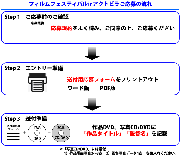 「応募フォーム」「作品素材」「送付物チェックシート兼申込確認書」